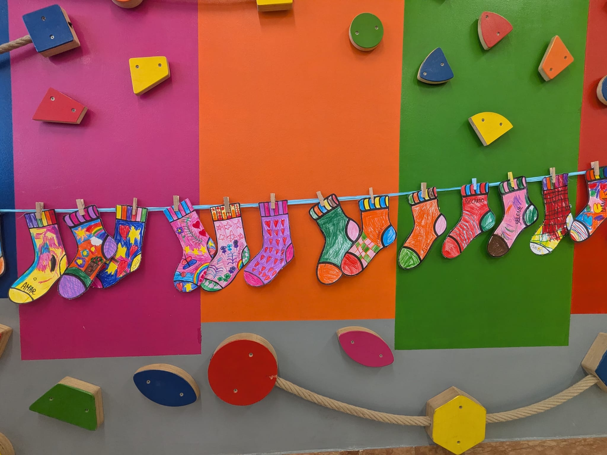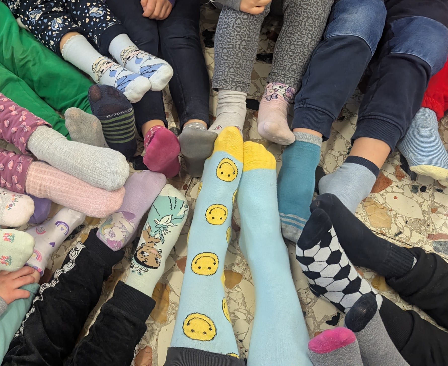 I nostri calzini non sono uguali tra loro, proprio come non lo siamo noi: ognuno è speciale, unico e originale. Attraverso questo gesto simbolico, bambini e ragazzi hanno potuto esprimere con spontaneità un messaggio importante: stare insieme significa accogliere le differenze, riconoscerle e valorizzarle.