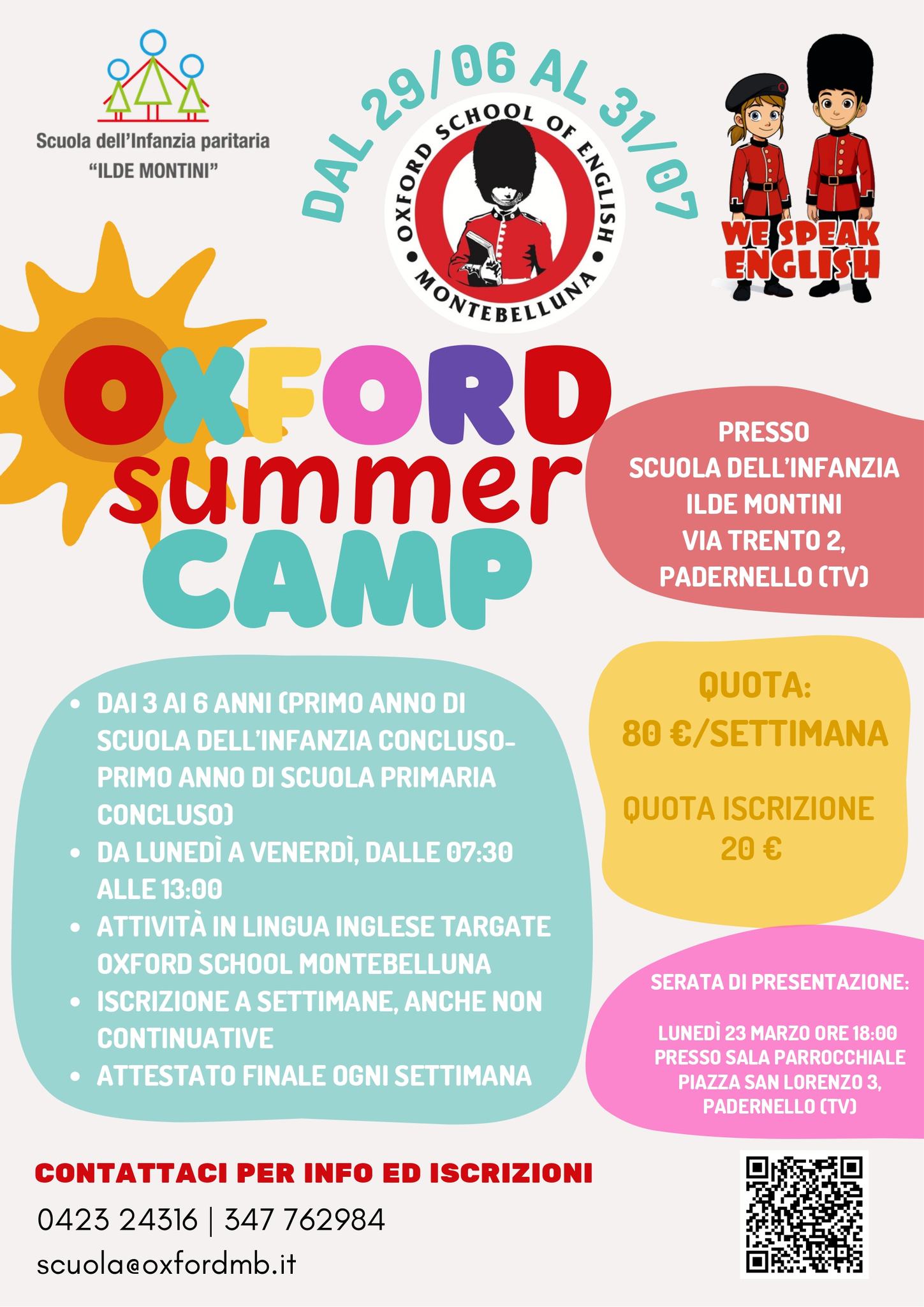 La Scuola dell’Infanzia paritaria “Ilde Montini” di Padernello, in collaborazione con la Oxford School of English di Montebelluna, propone per l’estate 2026 un Oxford Summer Camp, un’esperienza educativa e divertente pensata per avvicinare i bambini alla lingua inglese attraverso attività coinvolgenti e adatte alla loro età.